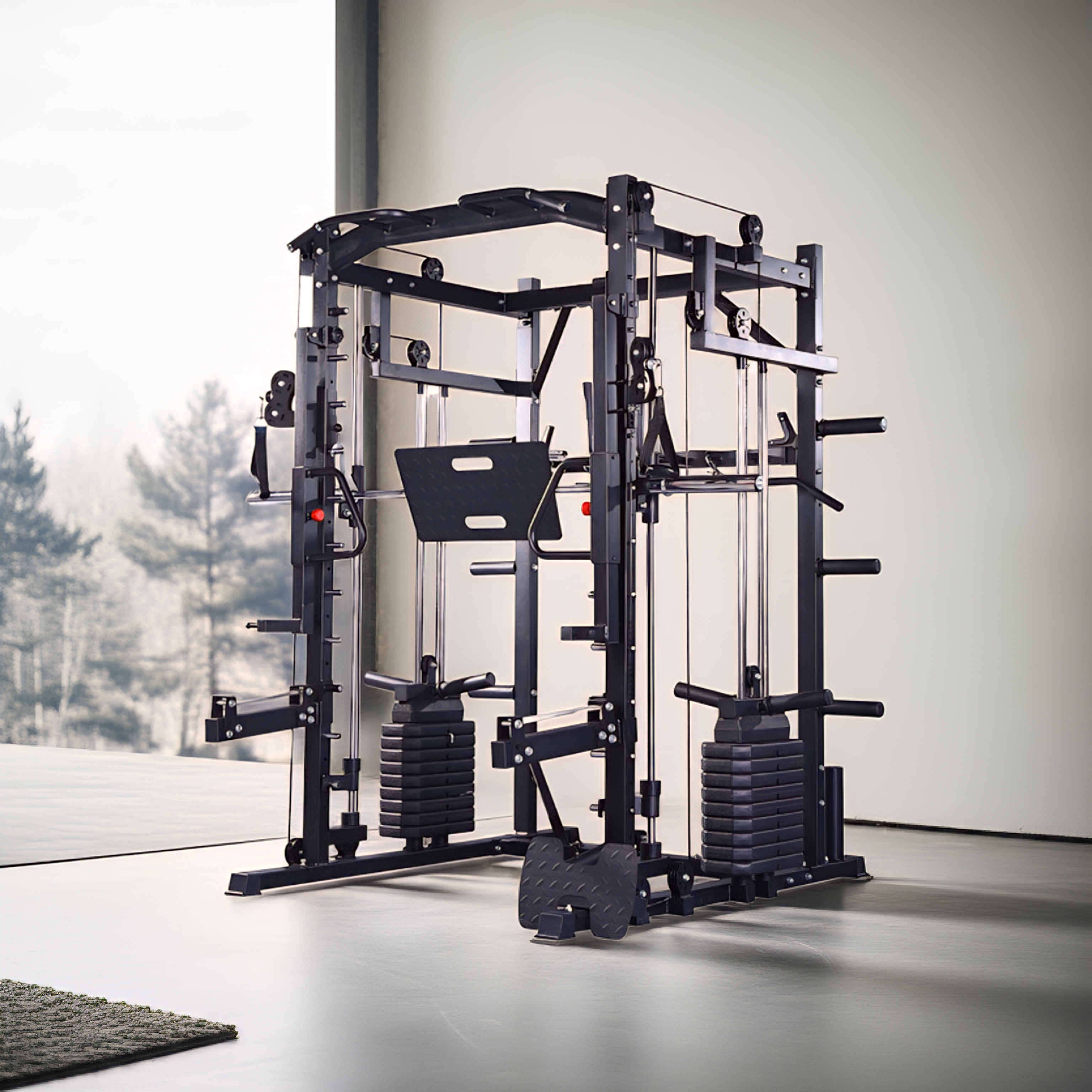 Movimento fluido e sicuro grazie al sistema a guida verticale. Permette squat, panca piana e stacchi in totale controllo.