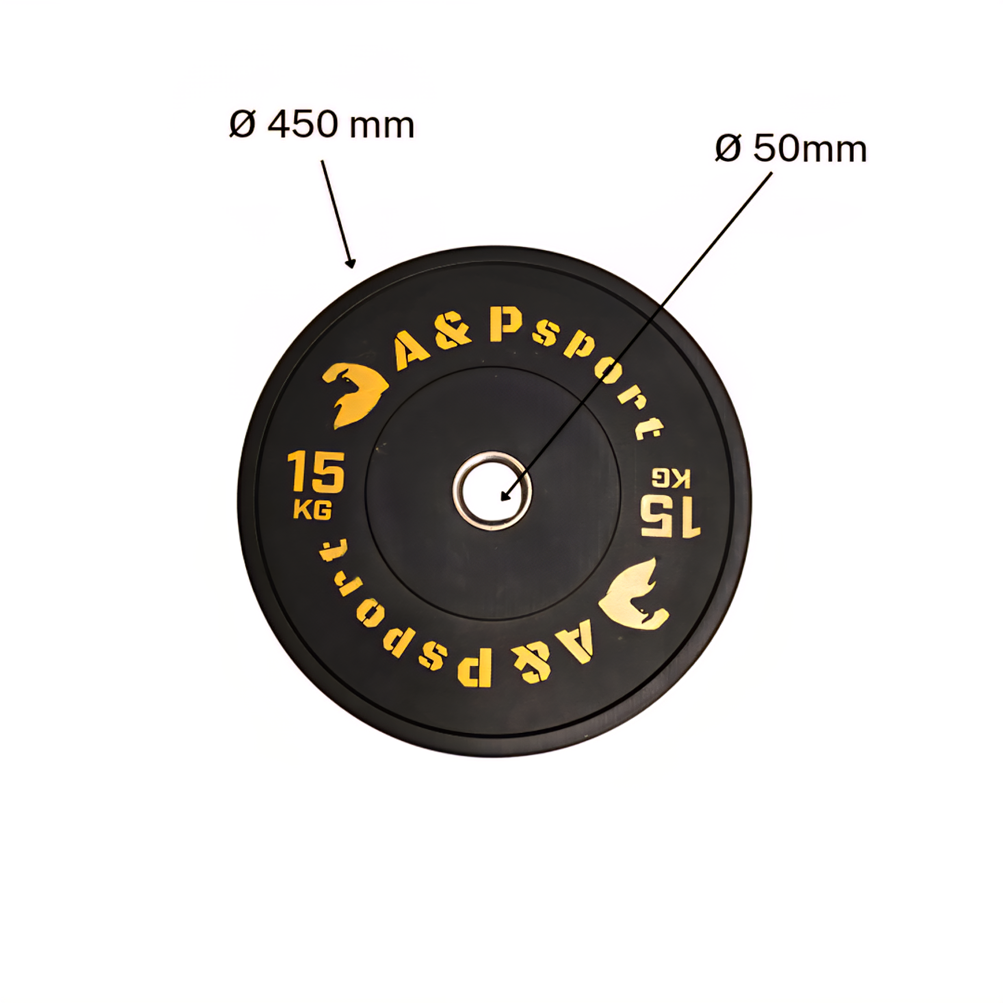 Ogni set è composto da un mix bilanciato di dischi in gomma bumper, con un foro standard da 50 mm, perfetti per allenamenti progressivi.